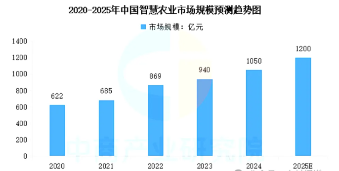在全球智慧農(nóng)業(yè)市場的快速增長中,中國也扮演著重要角色。中國作為農(nóng)業(yè)大國,對智慧農(nóng)業(yè)技術的需求和應用尤為迫切。政府和企業(yè)紛紛加大投入,推動智慧農(nóng)業(yè)技術的研發(fā)和應用。【鄉(xiāng)村聞道】認為智慧農(nóng)業(yè)市場規(guī)模連年增長,2024年中國智慧農(nóng)業(yè)市場規(guī)模超千億元,達到約1050億元,預計2025年將達到1200億元。
