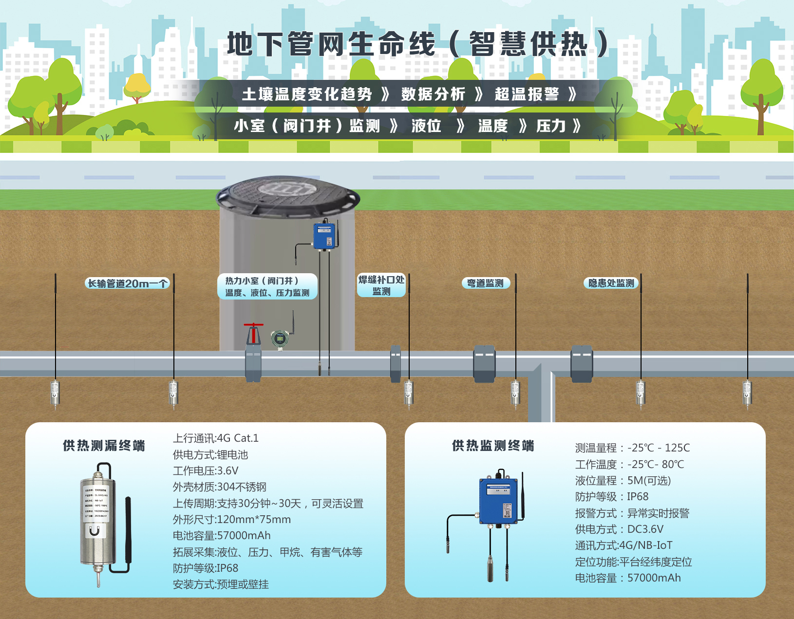 1、燃?xì)狻⒐┧?、排水、熱力、橋梁、綜合管廊等監(jiān)測(cè):通過(guò)實(shí)時(shí)監(jiān)測(cè)這些基礎(chǔ)設(shè)施的關(guān)鍵指標(biāo),如壓力、流量、液位、流速、水質(zhì)等,可以及時(shí)發(fā)現(xiàn)和解決問(wèn)題,確保城市基礎(chǔ)設(shè)施的正常運(yùn)行。